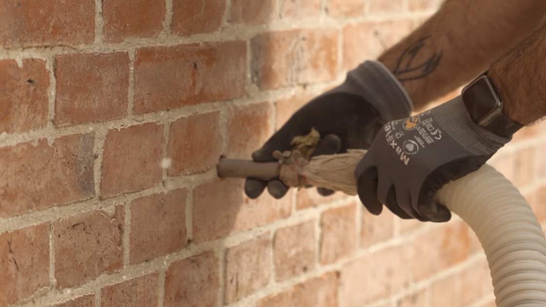 Einblasdämmung im zweischaligen Mauerwerk