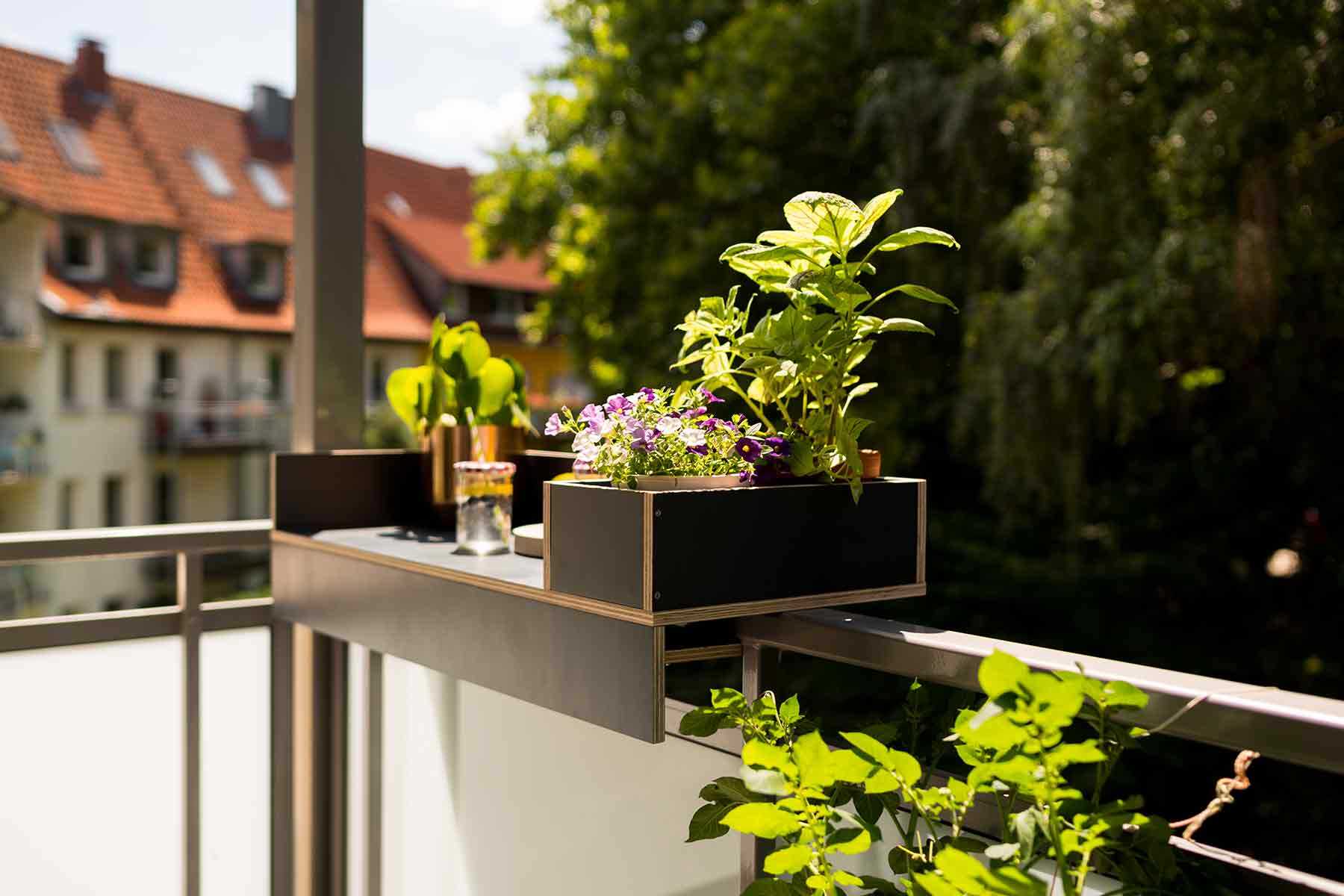 Diese Balkonbar ist vielseitig einsetzbar: Ablage, Stellfläche, Bartresen und Pflanzregal, alles in einem Möbelstück! Und je nach Balkonart bieten wir Dir auch noch die passende Befestigungsmöglichkeit. Worauf wartest du noch?