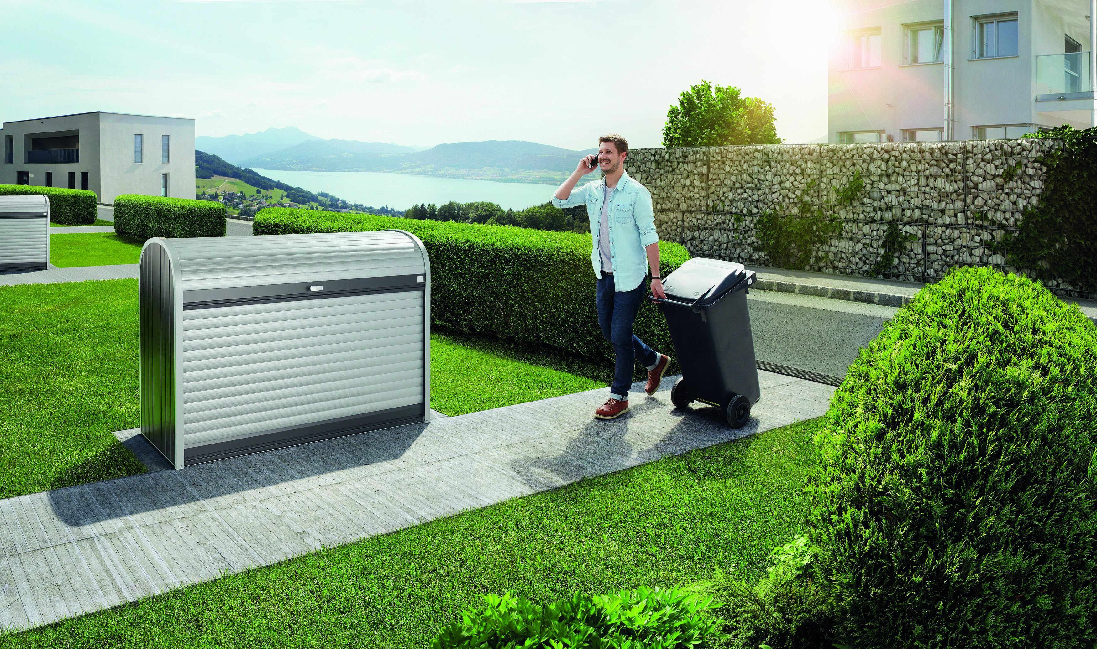 Mülltonnen sind oftmals kein schöner Anblick im Vorgarten oder in der Einfahrt. Mit den Mülltonnenboxen von Biohort löst du dieses Problem. Die Mülltonnenboxen aus Metall zeichnen sich durch ansprechendes Design, Langlebigkeit und Qualität aus - Made in Austria. Die Boxen schützen die Mülltonnen vor Wind, Regen und Sonneneinstrahlung und erschweren den Eintritt von Ungeziefer.