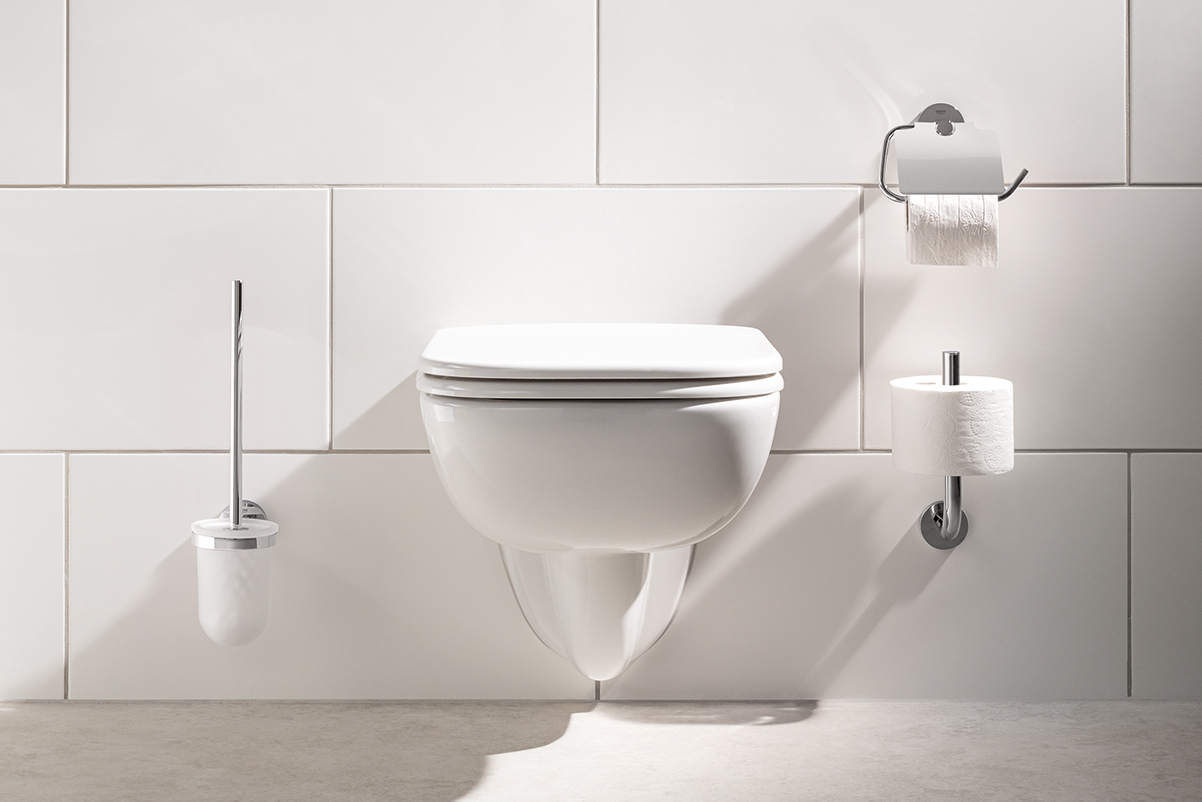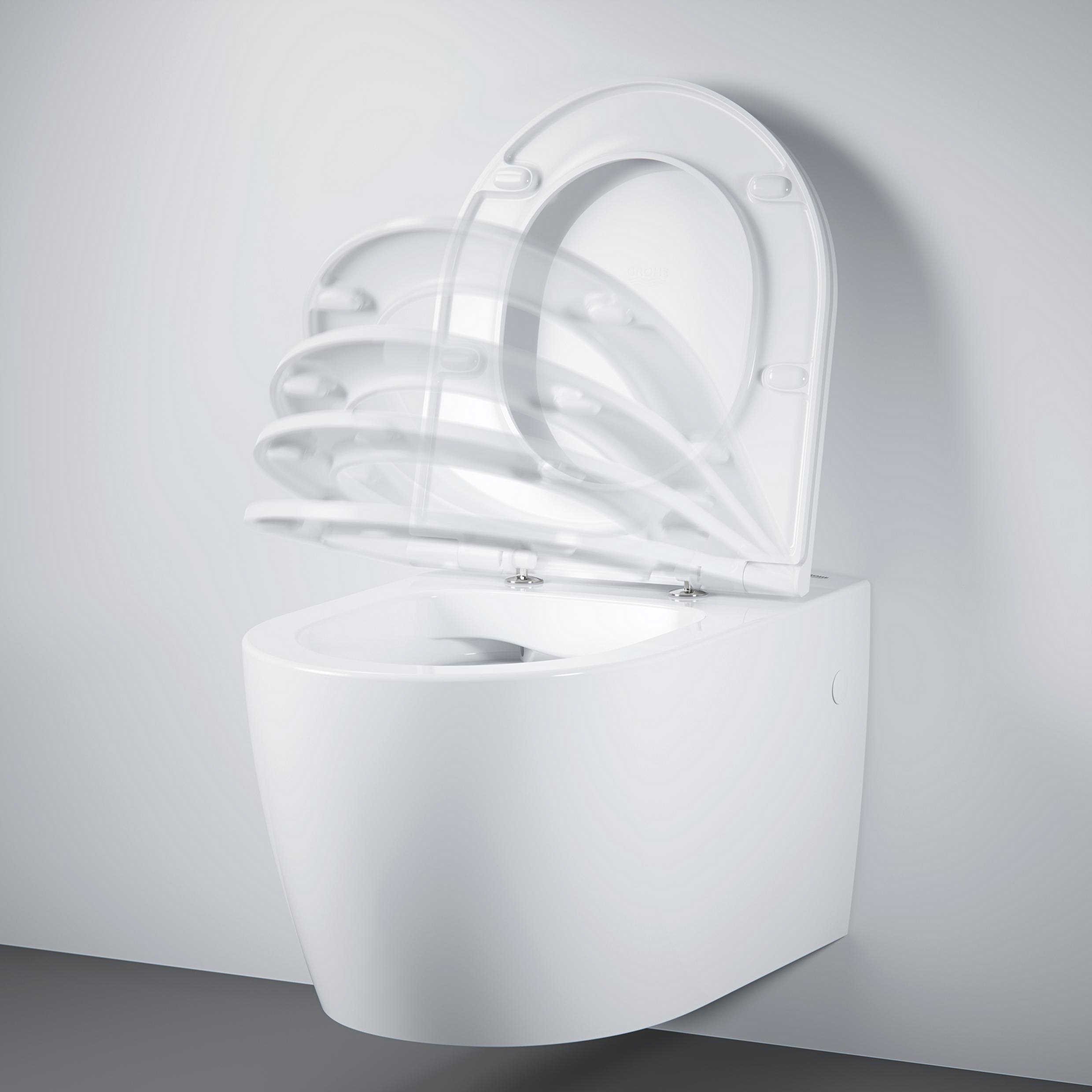 Das GROHE Bau Keramik wandhängende WC begeistert mit seinem schlanken Design und der GROHE SoftClose Technologie für sanftes Schließen von Sitz und Deckel, der bakterienresistenten und leicht zu reinigenden Randlos-Technologie und einer effizienten Spülung. Darüber hinaus bietet das SOLIDO Vorwandelement mit integrierter Spülstromdrossel zahlreiche Vorteile, darunter Zeitersparnis bei der Installation, Zugang über die Revisionsöffnung ohne Demontage und individuelle Justierung des Spülstroms.