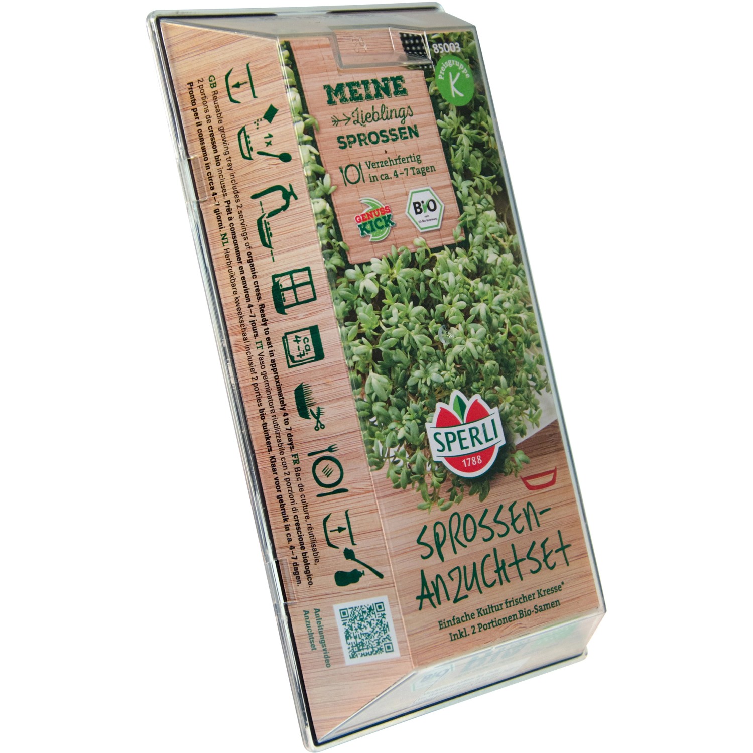 Das Kresse Starterset für Keimsprossen ist das perfekte System zur erdlosen Kultur von Kresse und ist kinderleicht im Gebrauch. Die Keimsprossen werden in der Keimschale herangezogen. Das Gitter auf die Auffangschale setzen, 1 EL Saatgut auf dem Gitter verteilen und das Saatgut mit Wasser übergießen, bis das Wasser in der Schale das Gitter von unten benetzt. Die Schale an einen hellen Platz ohne direkte Sonne stellen. Bei Bedarf verdunstetes Wasser nachfüllen. Zum Verzehr den oberen Teil der Sprossen abschneiden.