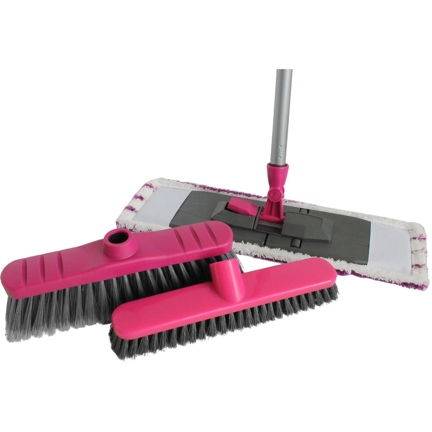 Das 4-teilige Bodenreinigungs-Set besteht aus einem Bodenwischer, einem Besen, einem Schrubber und einem Metallbesenstiel. Es ist in verschiedenen Farben erhältlich. Der Bodenwischer mit Klappbrett reinigt, durch seinen Bezug aus 100 % Mikrofaser, besonders einfach und gründlich. Der Besen überzeugt durch seine extra staubbindenden und geschlitzten Kunststoffborsten. Der Schrubber verfügt über robuste Borsten aus gewelltem Polypropylen. Der Metallbesenstiel ist ca. 110 cm lang und eigenet sich für alle drei Aufsätze (Mikrofaser-Bodenwischer, Besen und Schrubber).
