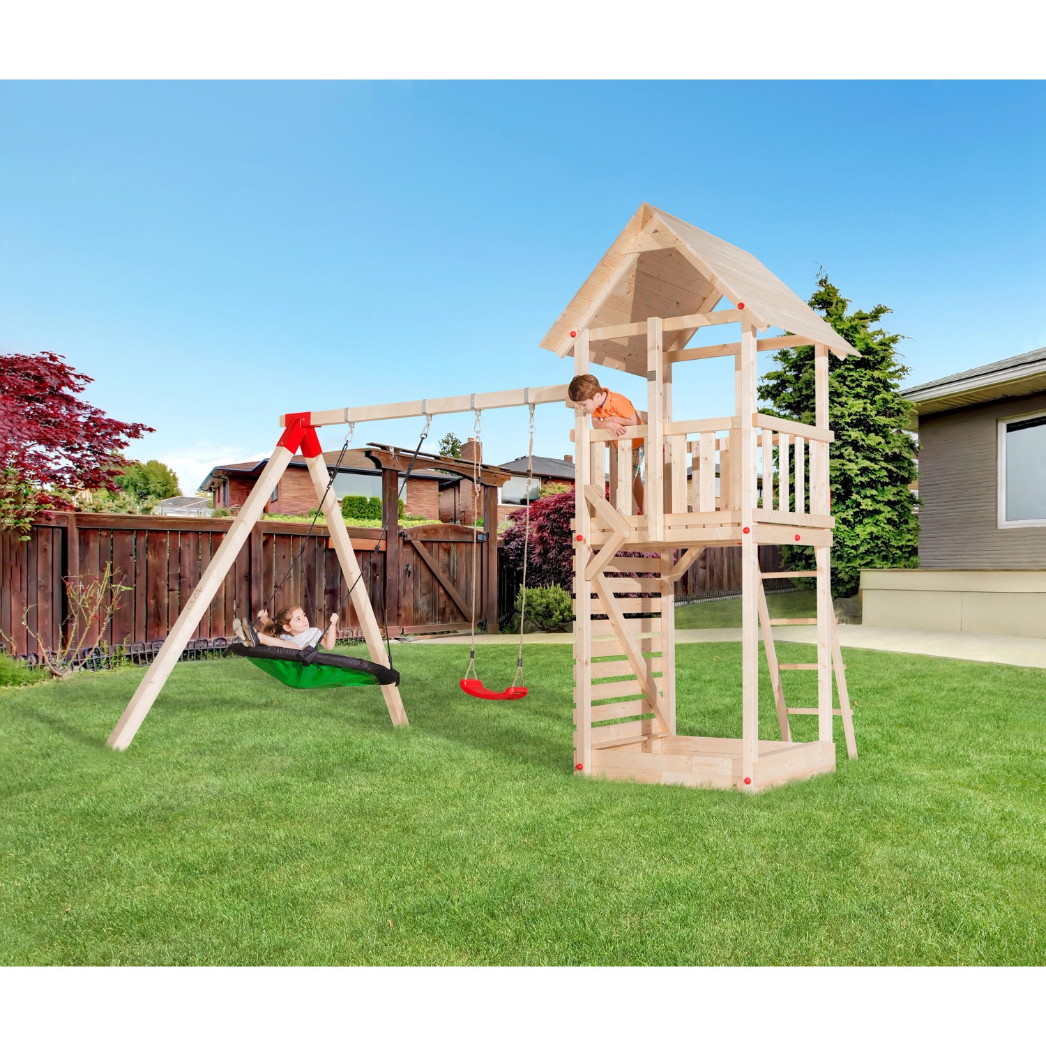 - Erweiterbar durch: Kletterwand, Rutsche und Brücke
