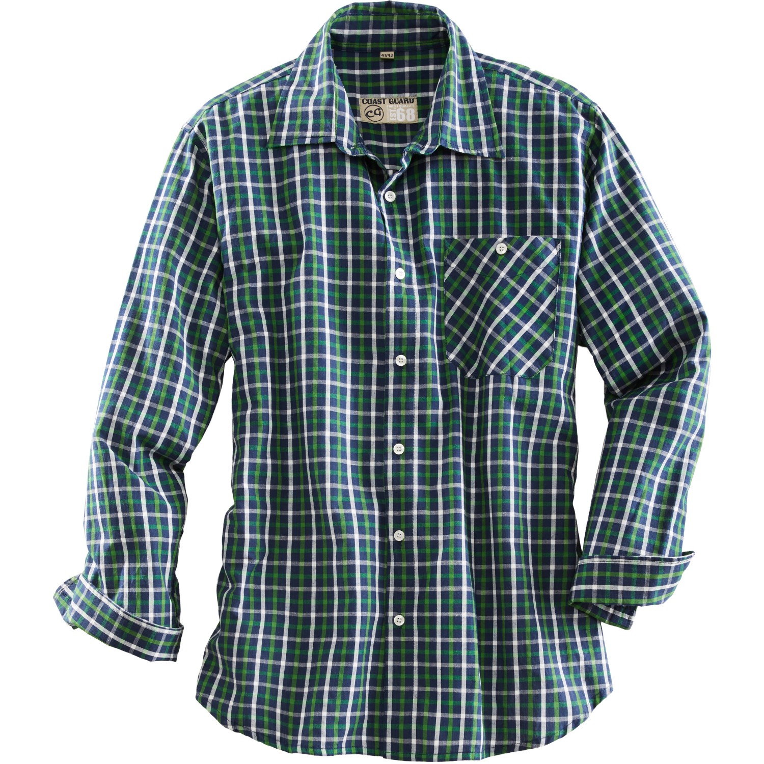 Coastguard Herrenhemd mit Langarm Blau-Grün kariert Gr. 41/42