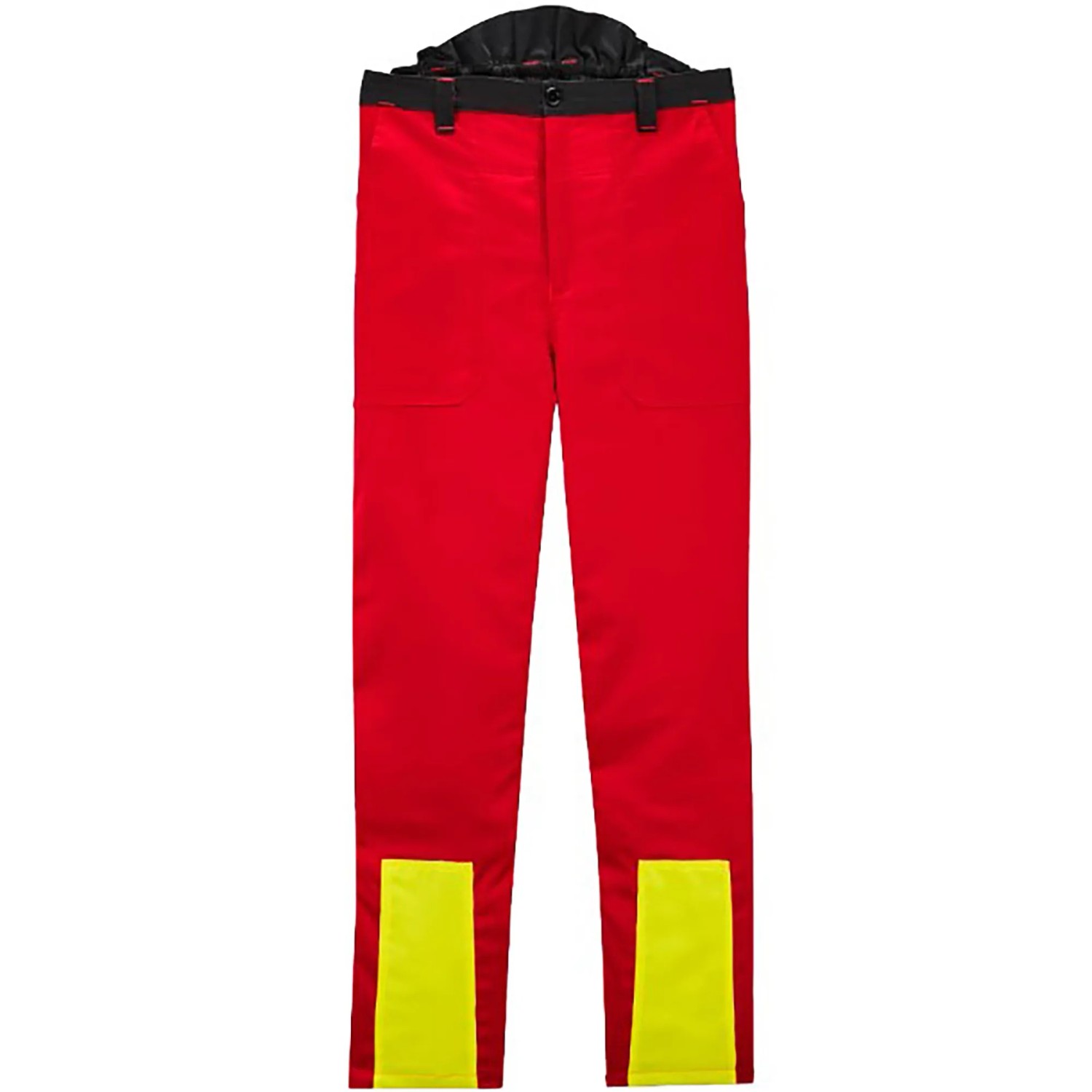 Die Scheibler workwear Schnittschutz-Bundhose Basic Woodcreek mit Kontrasten in leuchtgelb ist mit leuchtgelben Warnkeilen an den Hosenbeinen ausgestattet. Sie bietet praktische Details wie zwei Seitentaschen, eine aufgesetzte Gesäßtasche mit Klettverschluss, eine Zollstocktasche rechts sowie einen elastischen Bund mit Gürtelschlaufen und Hosenträgerschlaufen.