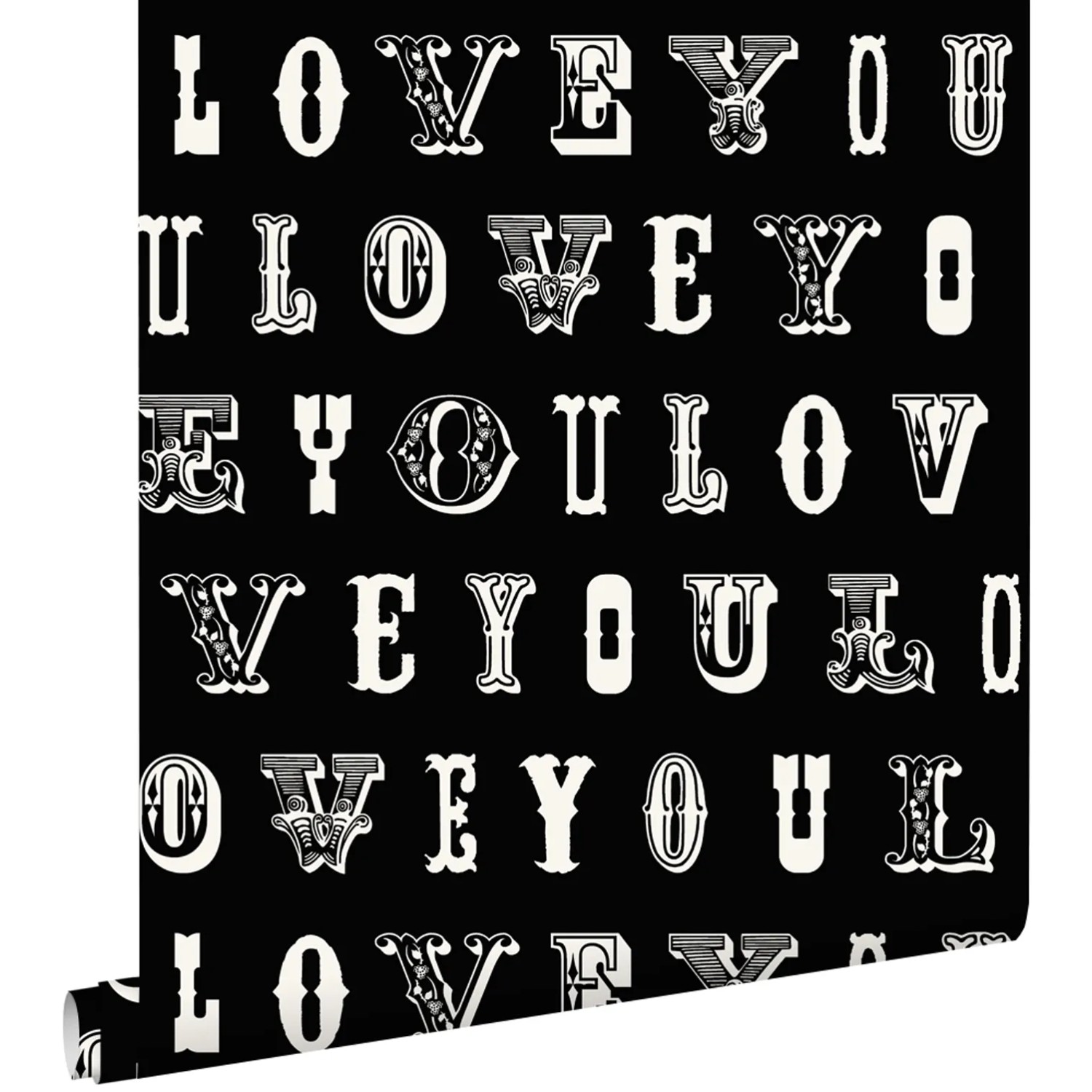 ESTAhome Tapete Love You - Sprüche Schwarz und Weiß 53 cm x 10,05 m 136836