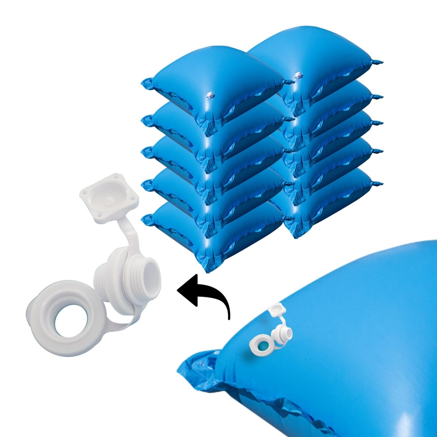 Die Luftkissen aus PVC-Kunststoff sind ganz einfach anzubringen und sorgen dafür, dass Ihre Abdeckplane eine Kuppelform bildet. Hierdurch kann Regen, Schnee und sonstiger Schmutz einfach ablaufen und es bildet sich keine Kuhle. Zudem schützen die Luftkissen vor möglichen Frostschäden und Ihre Abdeckplane kann auch ganz normal bei z.B. einer Abwesenheit im Sommer zum Schutz vor Verschmutzungen verwendet werden. Vor allem zur Überwinterung mit einem Winterkonservierer ist dies die optimale Kombination, um den Pool im Frühjahr wieder im guten Zustand zu öffnen. Die Luftkissen sind hierbei pyramidenförmig anzuordnen und am Besten an den Ösen an jeder Ecke festzubinden. Im Frühjahr kann alles wieder platzsparend zusammengelegt und aufbewahrt werden. Lieferumfang: - 10x Poolkissen