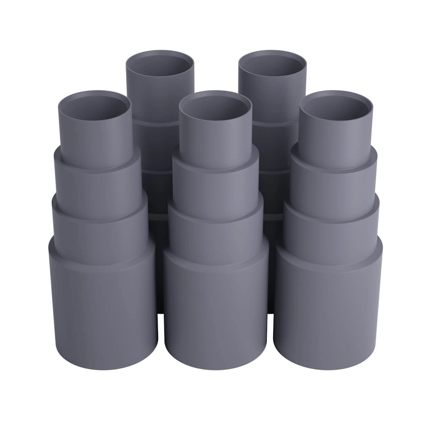 Universelle Schlauchadapter aus hochwertigem PVC-Gummi, um Staubsauger mit verschiedenen Werkzeugen, Düsen oder anderen Geräten zu verbinden. Dank mehrstufigem System können sie unterschiedliche Marken oder Modelle von Staubsaugern und Reinigungswerkzeugen kombinieren, die ansonsten nicht miteinander kompatibel wären. Oder wenn ein Originalteil Ihres Staubsaugers einmal verloren geht oder beschädigt wird, sind unsere Adapter eine kostengünstige und schnelle Hilfe.