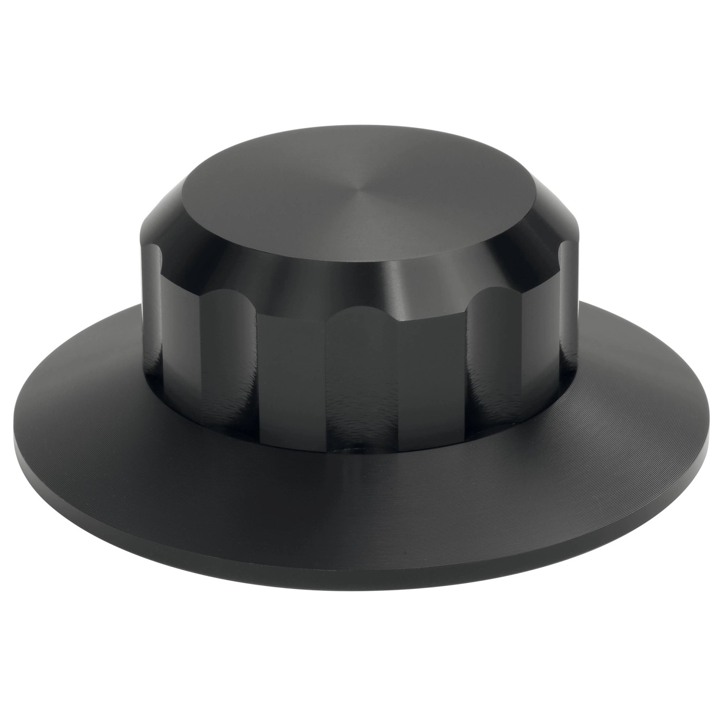 Das geringe Eigengewicht der Klemme schont empfindliche Tellerlager und verbessert den Gleichlauf, was die VC150 besonders für Subchassis-Player geeignet macht. Die Klemme ist aus eloxiertem Aluminium und Polyoxymethylen, einem hochwertigen Konstruktionswerkstoff, gefertigt.