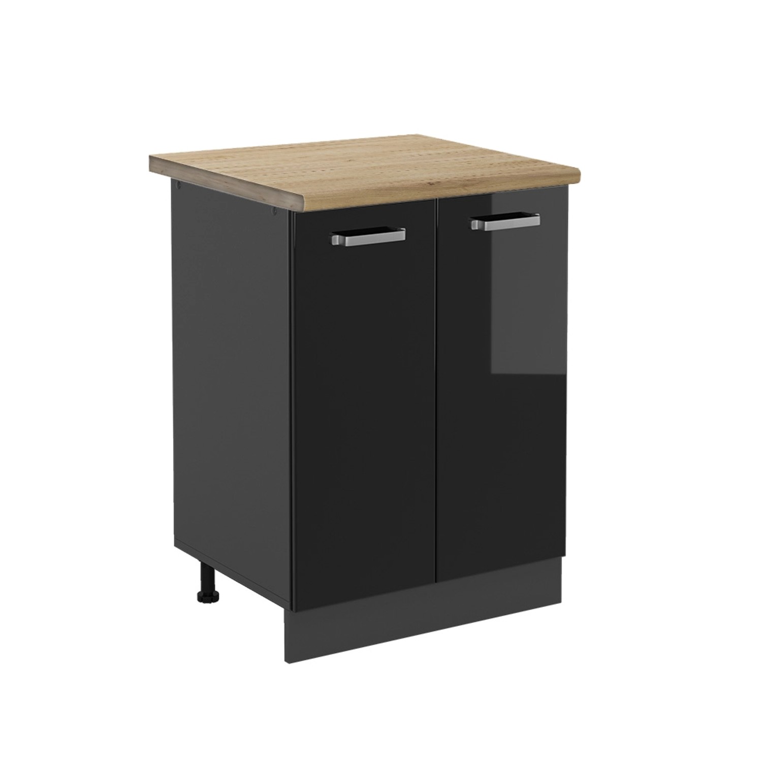 Vicco Küchenunterschrank R-Line Schwarz Hochglanz/Anthrazit 60 cm AP Eiche mit Anthrazit Korpus