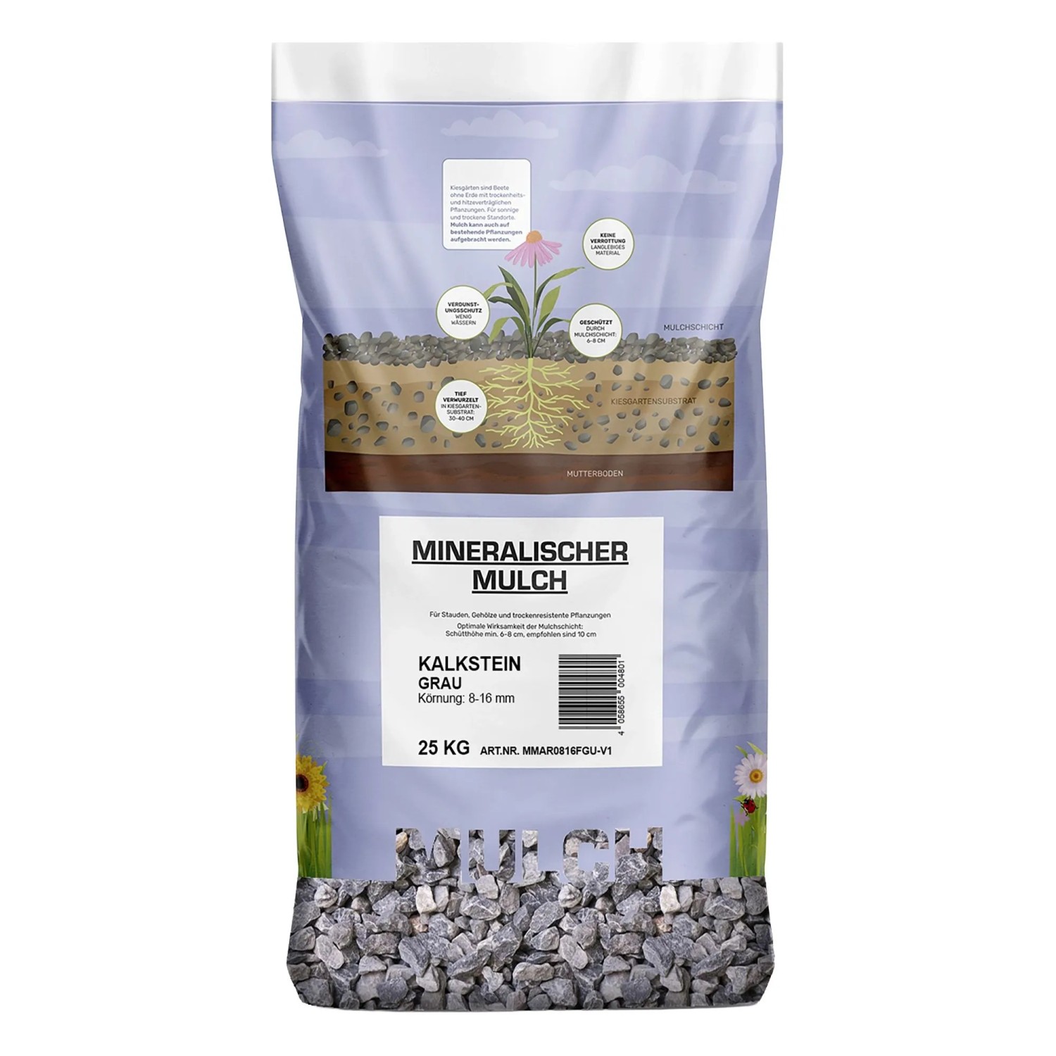 Weco Mineralischer Mulch Kalkstein 8 - 16 mm Grau 25 kg