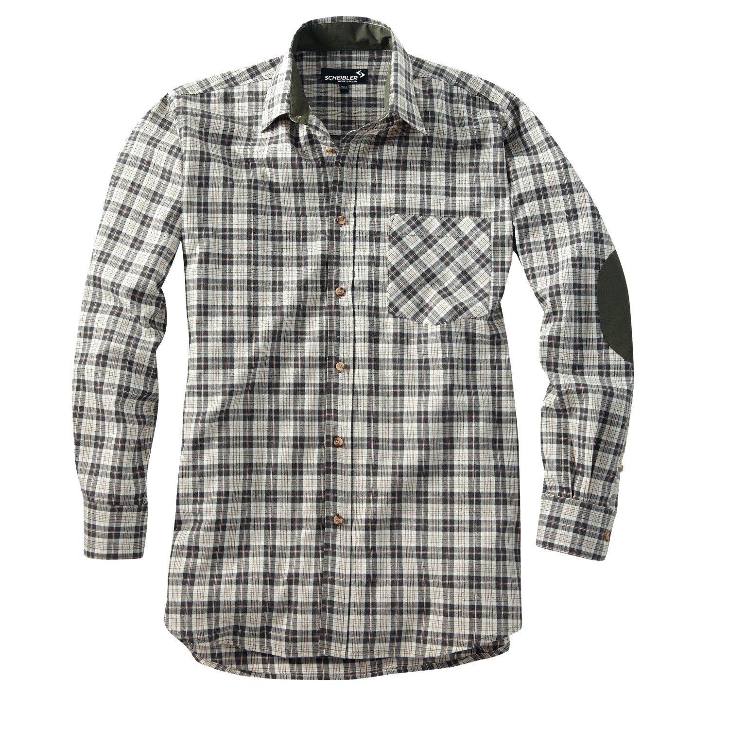 Die Scheibler Workwear Jagdhemd überzeugt mit einer leichten Qualität (140 g/m²) und einem garngefärbten Material für Langlebigkeit und Farbbeständigkeit. Es hat eine normallange Passform (ca. 85 cm) und zeichnet sich durch Kontrastoptik an Kragen, Knopfleiste und Ärmelabschlüssen aus.