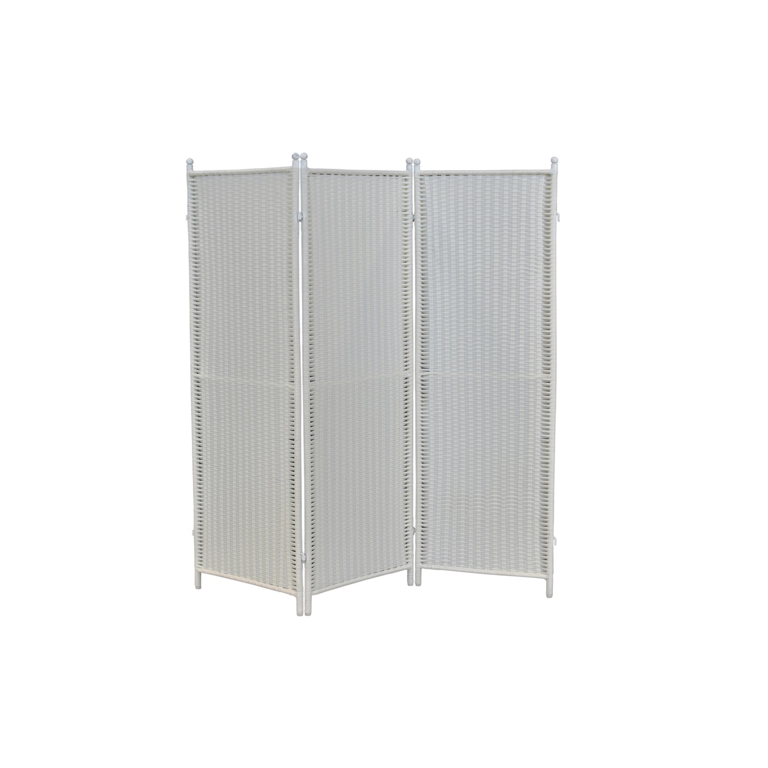 Der Paravent besteht aus einem pulverbeschichteten Stahlgestell mit Kunststoffgeflecht.