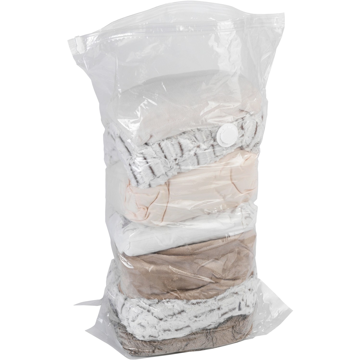 Der Vakuum-Beutel mit der Größe L (70 x 100 x 35 cm) ist mit einer praktischen Standfläche für größeres Fassungsvermögen ausgestattet. Die große Vakuum-Tasche bietet ideale Aufbewahrungsmöglichkeiten sowohl für Saison-Bekleidung oder Bettdecken als auch für Gartenpolster oder einen Kinder-Autositz. Das Volumen der Decken oder Polster wird auf ein Minimum reduziert. Staub, Nässe und Motten werden in diesem geschützten Behältnis von dem Inhalt fern gehalten.