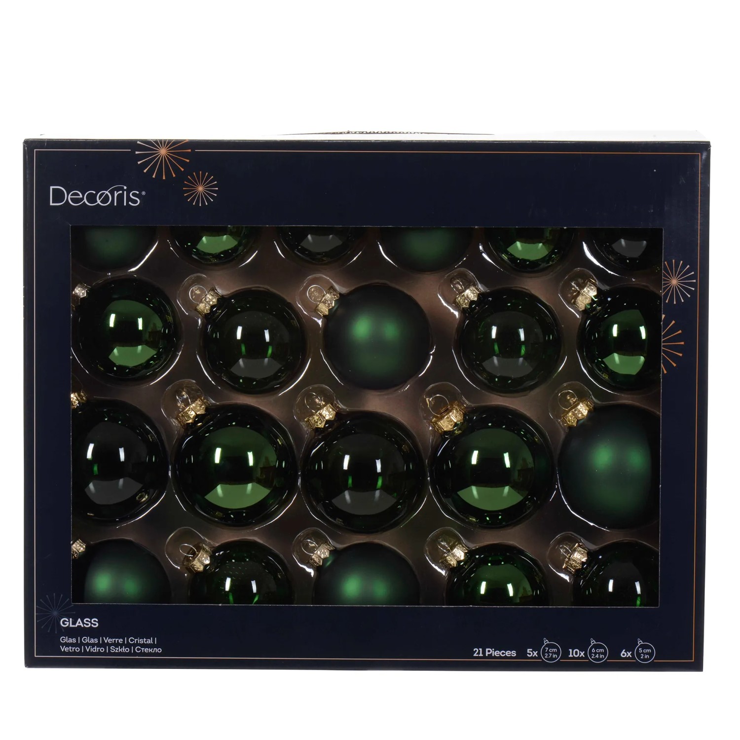 Decoris Weihnachtskugel-Set Glas Tannengrün 21-teilig