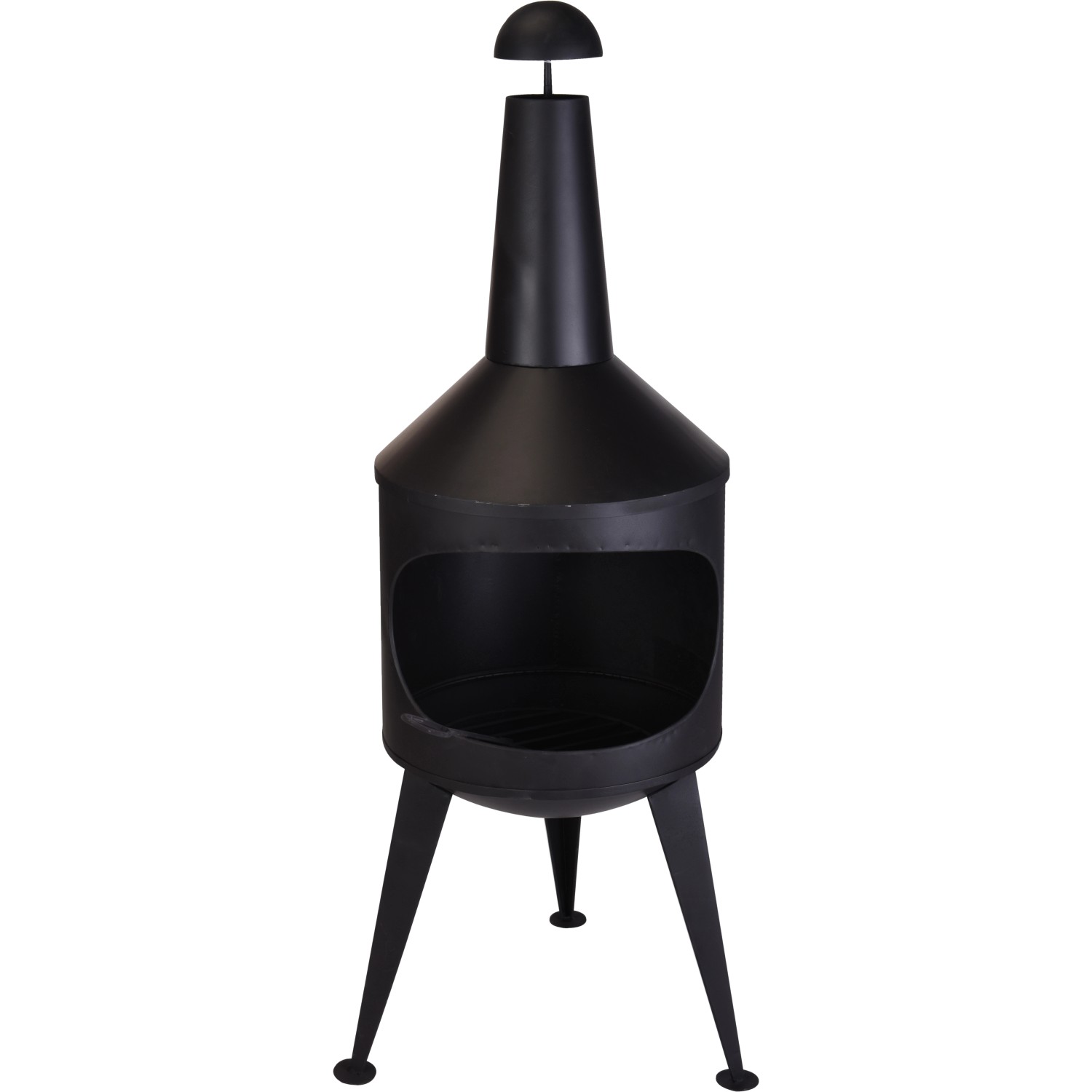 Terassen Kamin aus Metall mit 3 Beinen Schwarz