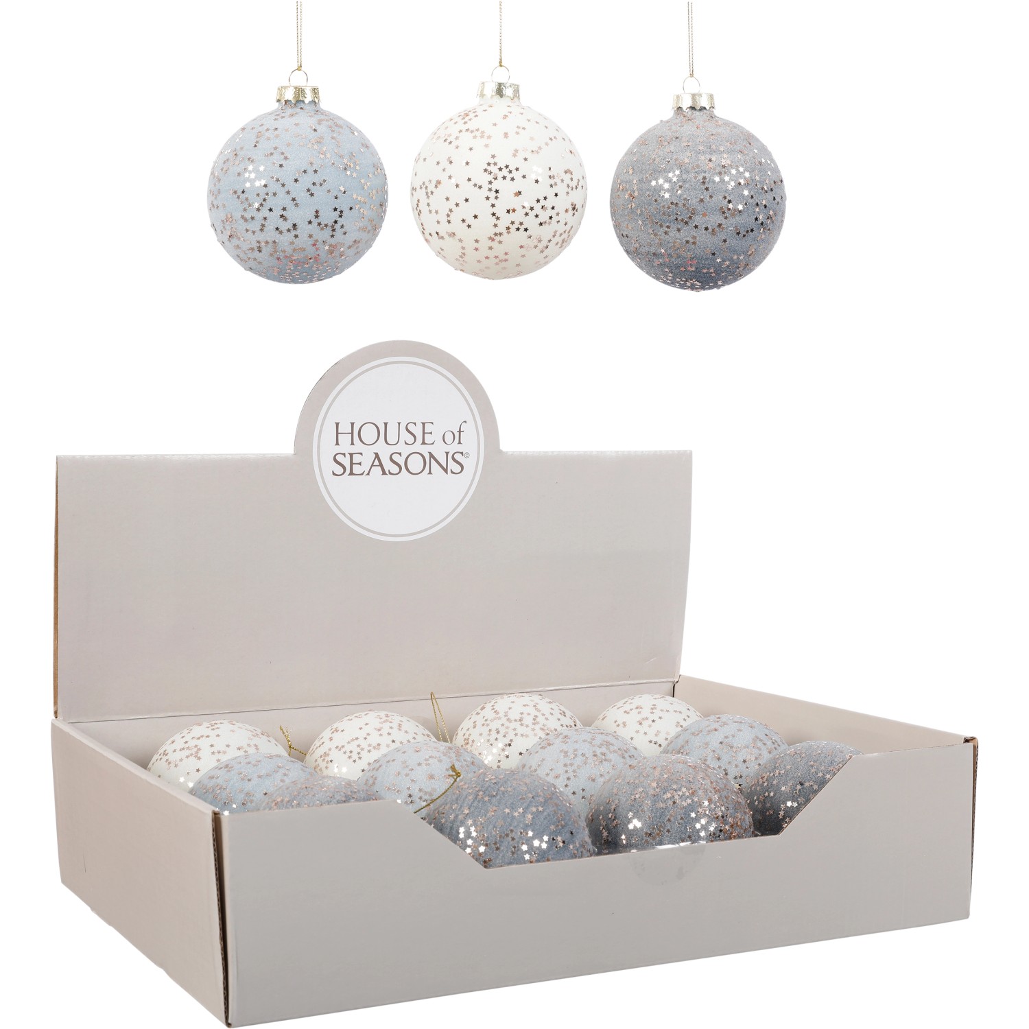 Kugel Glas Weiß, Hell-und Dunkelblau Ø8 cm