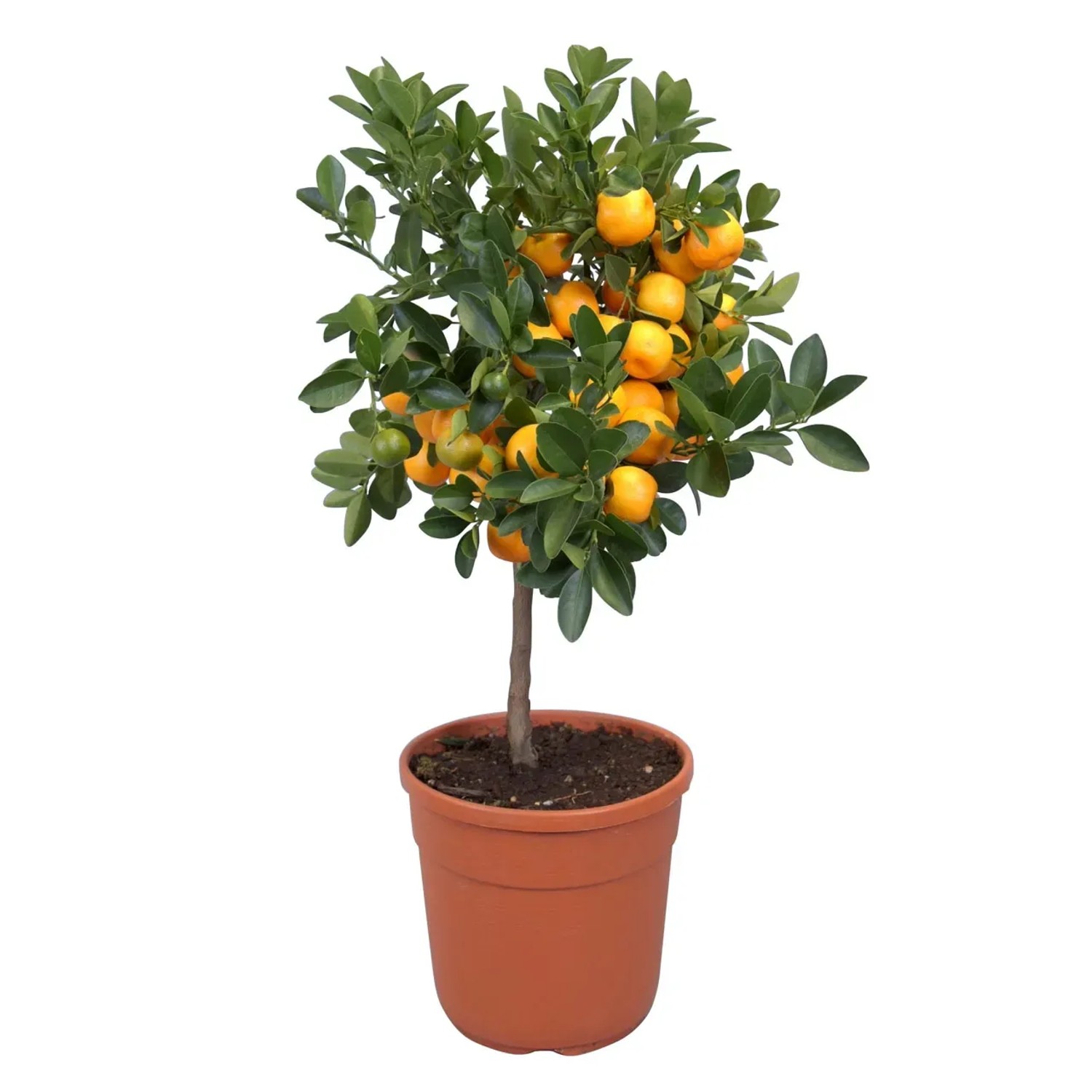 Das Zitrusbäumchen (Citrus calamondin) ist eine sehr dekorative fruchttragende Kübelpflanze mit gelb-orangefarbenen Früchten und weißen wohlriechenden Blüten. Die kleinen essbaren Früchte sind etwas größer als Mirabellen und eignen sich zur Herstellung von Marmelade oder Saft. Die Pflanze braucht direkte Sonne und sollte mäßig, aber regelmäßig gegossen werden. Ein wind- und regengeschützter Platz im Garten oder auf der Terrasse ist ideal. Alle vier Wochen ist es ratsam mit Zitrusdünger zu düngen.