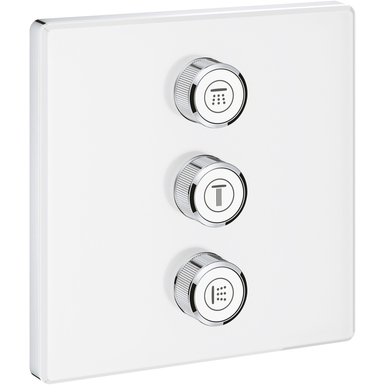 SmartControl Reglerset Das SmartControl Reglerset bietet Ihnen ein flexibles Duscherlebnis. Sie haben die Wahl zwischen mehreren Strahl- und Volumeneinstellungen. Wassermenge und gewünschte Strahlquelle lassen sich so einfach und individuell bestimmen. Dank Grohe EasyLogic Kennzeichnungen ist der multifunktionelle Regler auch für Gäste und Kinder leicht zu verstehen. Die Symbole lassen sich je nach Funktionen des Duschsystems auswechseln. Darüber hinaus können Sie die einzelnen Symbole gleichzeitig betätigen, um ein einzigartiges Duscherlebnis zu schaffen. Die prägnante, eckige Wandrosette verdeckt unansehnliche Befestigungselemente und verdeckt zudem Rosetten- und Schaftabdichtung. So wird das eindrucksvolle Design des Reglers nicht unterbrochen.