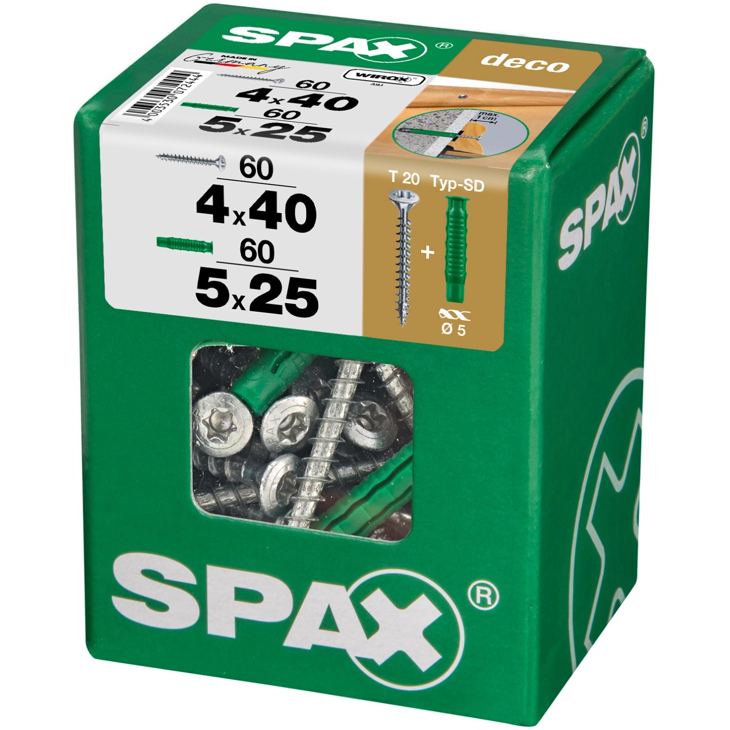 Die Holzschraube verfügt über einen T-Star plus-Antrieb. Der T-Star plus-Antrieb von Spax zeichnet sich durch eine sehr gute Kraftübertragung aus, wodurch Durchrutschen und Runddrehen fast vollständig vermieden wird. Schrauben mit T-Star Antrieb lassen sich mit kleinem Werkzeug eindrehen wodurch sie besonders für schwer zugängliche Stellen geeignet sind. Zusätzlich wird beim schrauben kein großer Anpressdruck benötigt um ein Verrutschen zu vermeiden. Die Wirox Holzschraube verfügt über einen deutlich besseren Korrosionsschutz als blanker Stahl. Aber nicht nur der Schutz vor äußeren Einflüssen ist deutlich besser, sondern auch die Optik wird aufgewertet. Der Linsenkopf liegt auf dem Werkstoff auf und verhindert somit eine Beschädigung des Materials. Die Schraube mit Linsenkopf kann als dekoratives Element dienen, das zum Beispiel bei Beschlägen und Sockelleisten zum Einsatz kommt. Die runde Form verringert ebenso das Verletzungsrisiko.