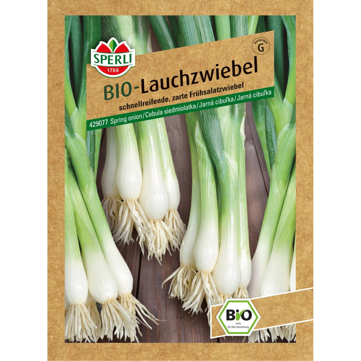 Die Sperli Bio Lauchzwiebel (Allium cepa) ist eine beliebte, robuste Frühlingszwiebel mit langen, weißen Schaften. Die besonders milde und zarte Frühsalatzwiebel hat knackige, saftige Stiele, die sehr schnell reifen. Sie kann im jungen Zustand bereits nach 6 bis 8 Wochen geerntet werden. Der Geschmack wird pikanter, je länger die Sorte steht. Bei einer Lagerung im Kühlschrank bleiben sie nach der Ernte lange frisch. Sie lieben einen sonnigen, warmen Boden und müssen wenig gedüngt werden. Bitten achten Sie auf eine gleichmäßige Feuchtigkeit.