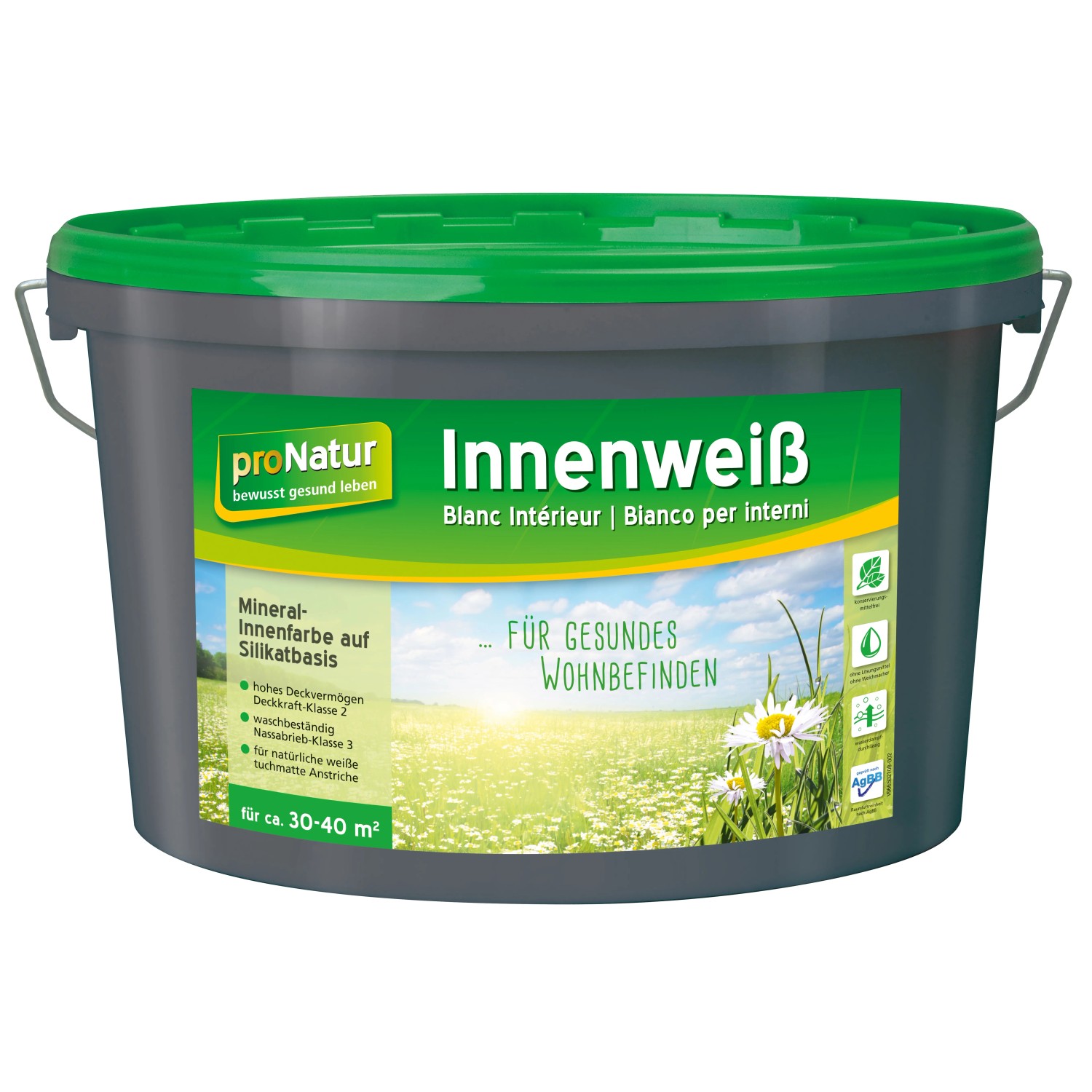 Pronatur Innenweiß ist eine Silikat-Mineralfarbe mit hoher Wasserdampfdurchlässigkeit.