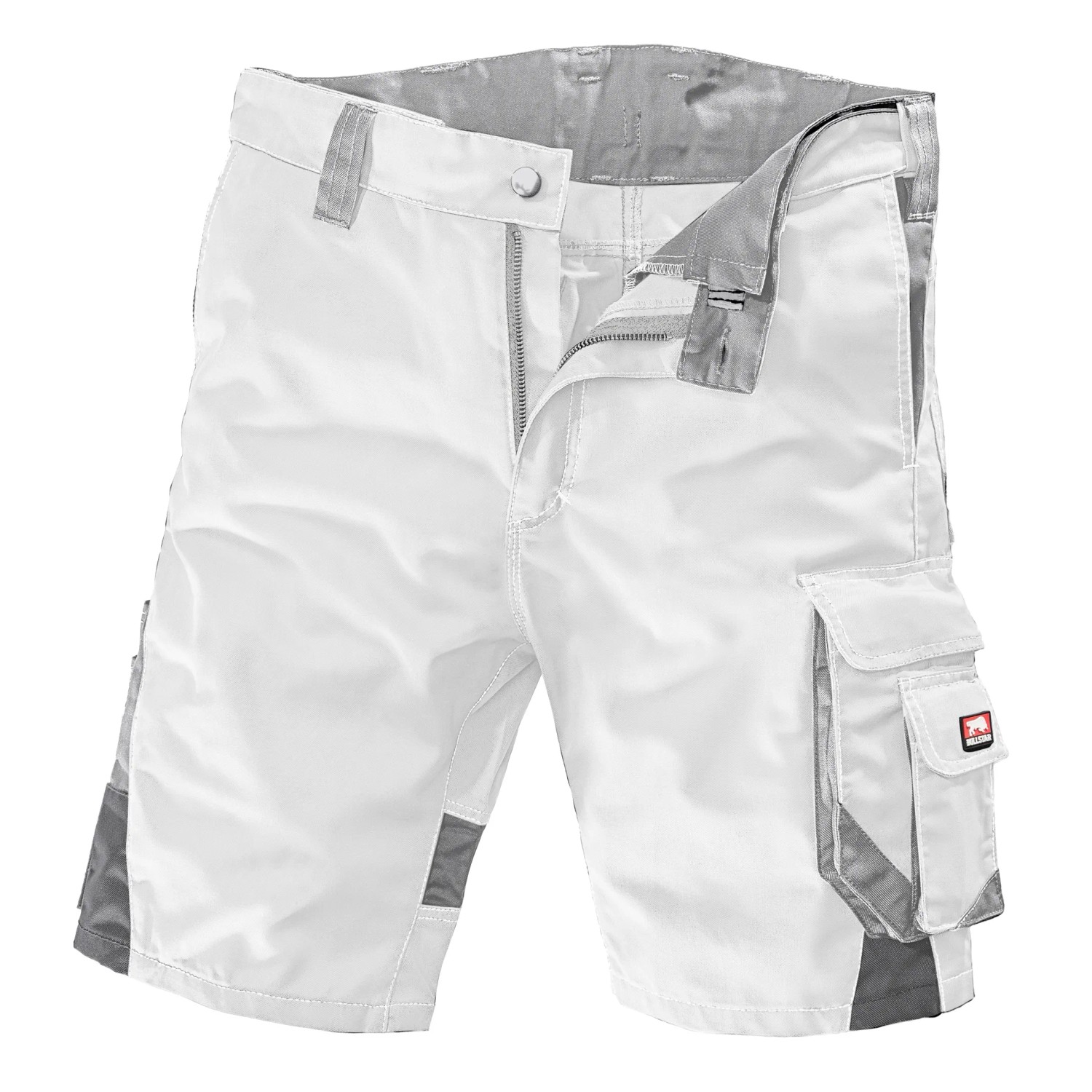 Die Bullstar Arbeitsshort Worxtar bietet zahlreiche praktische Taschen, darunter zwei Schubtaschen, eine Handytasche, eine Cargo-Tasche mit Patte und Klettverschluss sowie eine Gesäßtasche, um Handy, Zollstock und andere Gegenstände sicher zu verstauen. Zusätzlich ist die Short auch mit Taschen für Messer und Stifte ausgestattet.