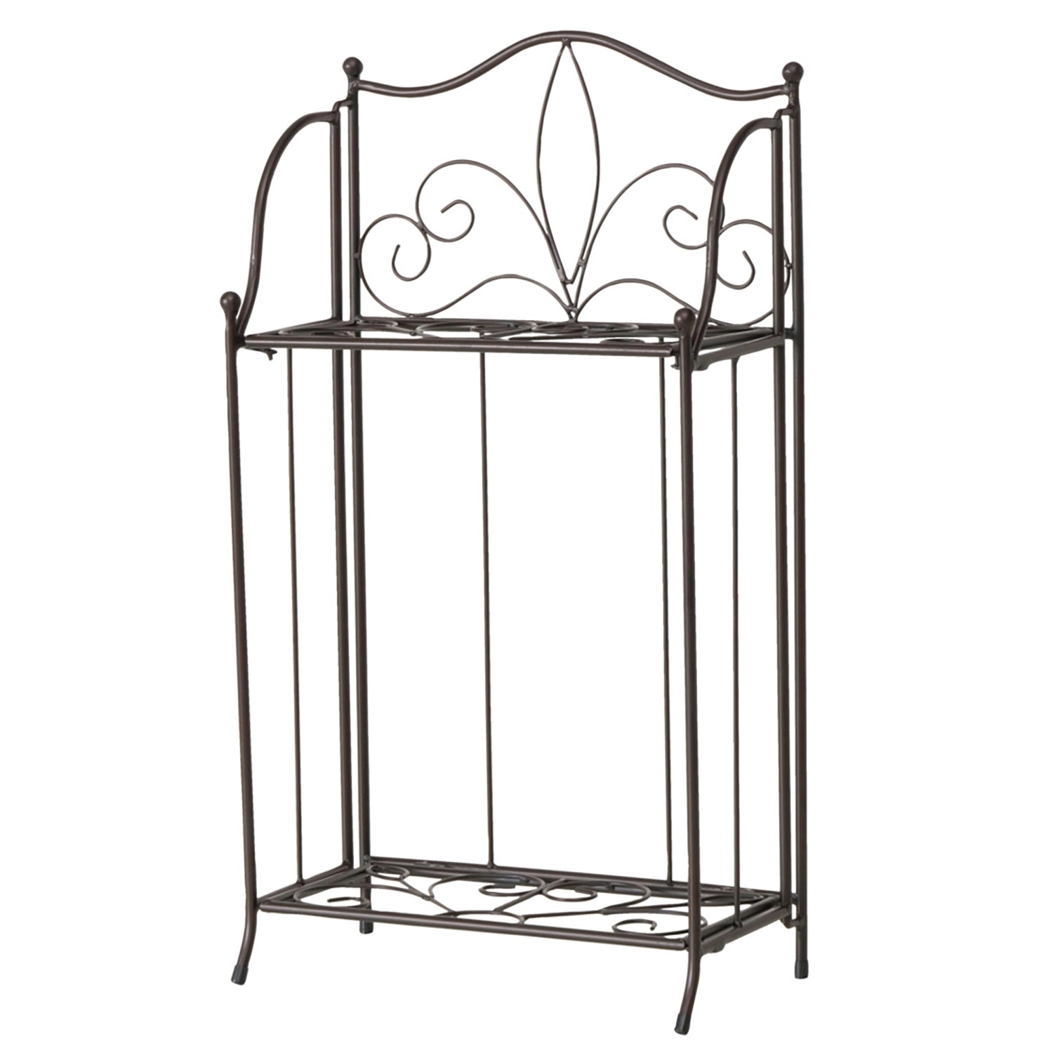 Das Regal Salerno von Boltze Home vereint zeitlose Eleganz mit praktischer Funktionalität. Gefertigt aus pulverbeschichtetem Eisen in Antikbraun, bietet es eine langlebige und robuste Qualität.