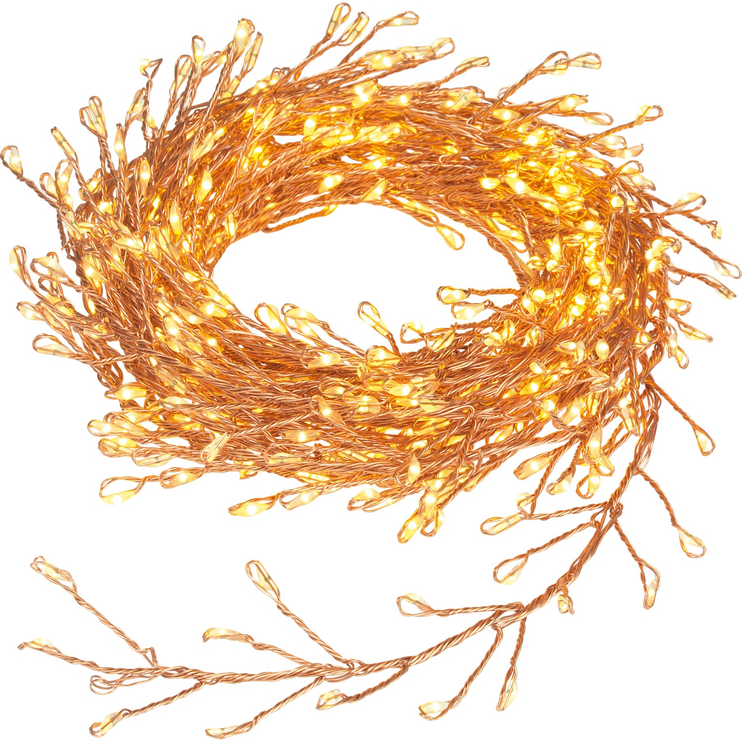 Die LED-Drahtlichterkette setzt stimmungsvolle Lichtakzente im Winter und der Weihnachtszeit. Durch den biegbaren Draht aus Kupfer bietet sie Ihnen individuelle Gestaltungsmöglichkeiten. So können Sie die Lichterkette um Pflanzen und Bäume wickeln, an der Treppe dekorieren oder in Vasen platzieren. Geeignet ist sie für den Innen- und Außenbereich. Die LED-Drahtlichterkette mit 480 LEDs besitzt eine großzügige Zuleitung von 5 m, womit sich viele Gestaltungsideen umsetzen lassen. Mit ihrem transparenten Kabel bleibt sie zudem dezent und unauffällig. Die Drahtlichterkette hat eine Gesamtlänge von 9,8 m.