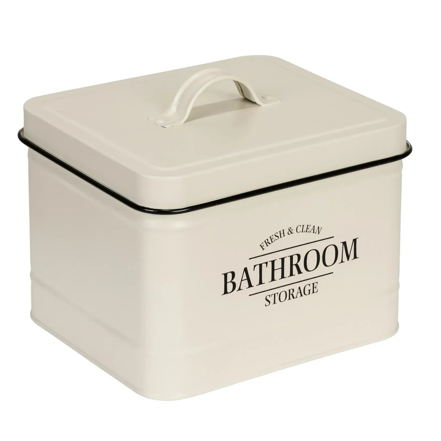 Hergestellt ist die Badbox Uri aus Stahl in Beige und verfügt über einen kleinen Griff zum Öffnen und Schließen der Dose. Abgerundet wird der Look durch einen Aufdruck in Schwarz und einen schwarzen Deckelrand. Die Material- und Farbkombination steht für einen zeitlosen Charme und verwandelt das Bad in einen echten Vintage-Traum.