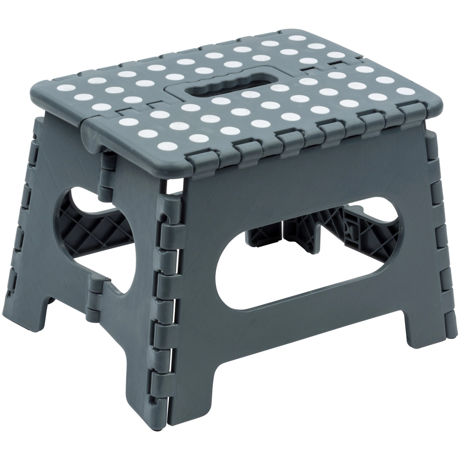 Der praktische Wenko Klapptritt Rutschfest mit gummierten Füßen Grau hilft dabei, auch höher gelegene Gegenstände zu erreichen. Egal ob im Badezimmer, in der Küche oder im Flur, der leichte Tritt mit rutschsicherer (gepunktete und gummierte) Oberfläche sorgt für eine optimale Standsicherheit bei einer Standhöhe von 22 cm - kein unsicheres Balancieren und Wackeln mehr. Die gummierten Füße sind rutschfest, auf diese Weise bieten sie auch auf einem glatten Untergrund, wie zum Beispiel auf Fliesen, sicheren Halt. Ein komfortables Auf- und Absteigen ist durch die großzügige Standfläche ebenso garantiert wie ein ermüdungsfreies Stehen, selbst nach längerer Standzeit. Der robuste Tritt lässt sich bei Nichtgebrauch flach zusammenklappen, ideal für platzsparendes Verstauen. Einen komfortablen Transport gewährleistet der clevere Tragegriff des grauen Helfers. Der moderne, zuverlässige Klapptritt ist aus Kunststoff hergestellt und trägt eine Last bis 150 kg. Ausgeklappt hat der Haushaltshelfer ein Maß von (B x H x T): 29 cm x 22 cm x 22 cm.