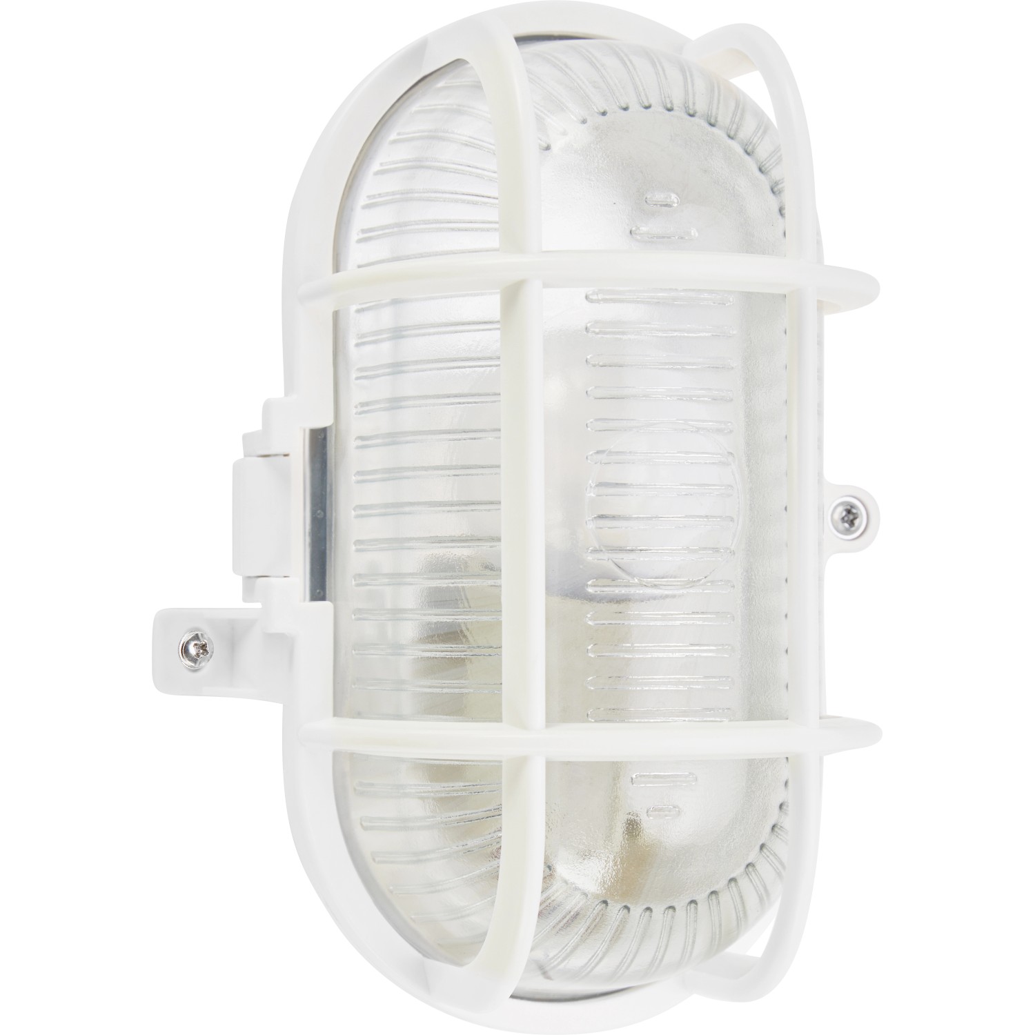 Diese robuste Ovalleuchte für drinnen und draußen ist eine unkomplizierte und widerstandsfähige Leuchte für den Keller, Schuppen oder überdachten Außenbereich. Sie ist aus weißem Kunststoff mit robustem Strukturglas und einem schützenden Korb gefertigt. Die Lampe ist mit der Schutzklasse IP44 ausgestattet und sorgt überall dort für zuverlässiges Licht, wo du es brauchst. Betrieben wird die Leuchte mit einem E27-Leuchtmittel deiner Wahl mit bis zu 60 W, sodass du die Helligkeit und Lichtfarbe individuell an deine Bedürfnisse anpassen kannst. Das passende Leuchtmittel ist separat erhältlich.