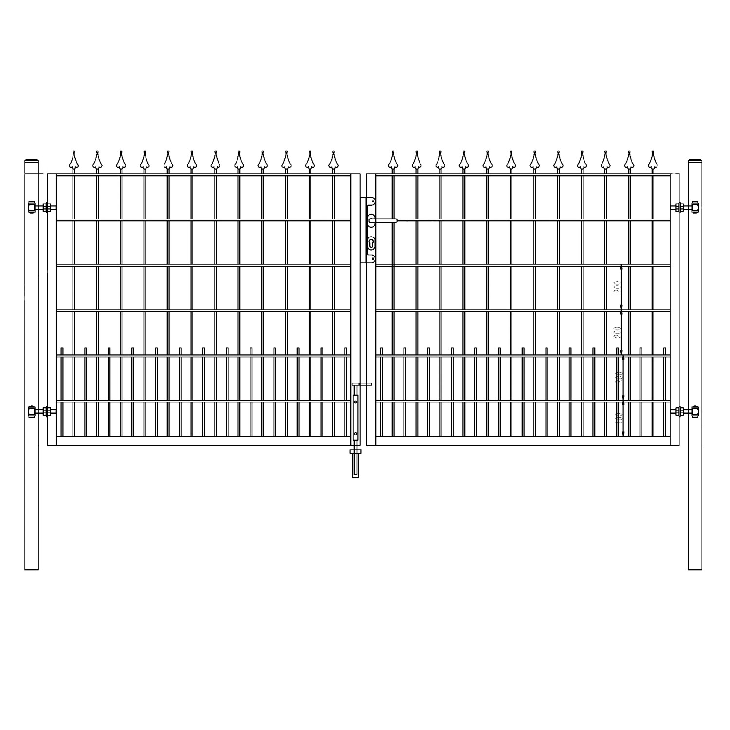 Schmuckzaun Doppeltor U20 mit Spitze Lilie Anthrazit 300 cm x 100 cm
