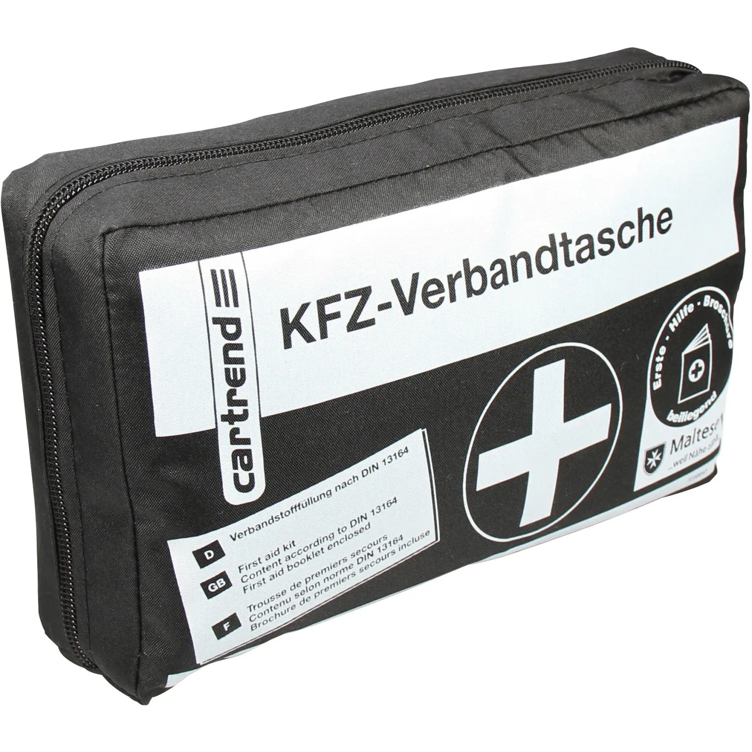 Ein Verbandskasten ist laut StVZO Pflicht in jedem Auto. Und wer schon einmal erste Hilfe am Unfallort geleistet hat, weiß, wie wichtig und hilfreich z.B. Rettungsdecke und Kompressen sind. Was in einem Auto-Verbandskasten enthalten sein muss, regelt die Norm DIN 13164. Diese wurde im Jahr 2022 in einem wesentlichen Punkt geändert: In Zukunft müssen Autofahrer auch zwei medizinische Gesichtsmasken mitführen. Die Maskenpflicht im Verbandkasten soll voraussichtlich mit der nächsten Änderung der Straßenverkehrszulassung (StVZO) kommen und damit auch für die Zeit nach der Pandemie gelten. Wer keinen Verbandkasten mitführt, riskiert bei einer Verkehrskontrolle mit dem Auto ein Verwarnungsgeld bis zu 10 Euro. Die cartrend Verbandtasche besteht aus: 1 Heftpflaster, DIN 13019-A, 5 m x 2,5 cm 4 Wundschnellverbände, DIN 13019-E, 10 cm x 6 cm 2 Verbandpäckchen, DIN 13151-M 1 Verbandpäckchen, DIN 13151-G 1 Verbandtuch, DIN 13152-BR, 40 cm x 60 cm 1 Verbandtuch, DIN 13152-A, 60 cm x 80 cm 6 Kompressen, 10 cm x 10 cm 2 Fixierbinden, DIN 61634-FB-6 3 Fixierbinden, DIN 61634-FB-8 2 Dreiecktücher, DIN 13 168-D 1 Rettungsdecke, 210 x 160cm 1 Erste-Hilfe-Schere, DIN 58279-A 145 4 Einmalhandschuhe, DIN EN 455 1 Erste-Hilfe-Broschüre 2 Feuchttücher zur Hautreinigung 1 14-teiliges Pflasterset 1 Verband-Päckchen K 2 medizinische Mund-Nasen-Bedeckungen